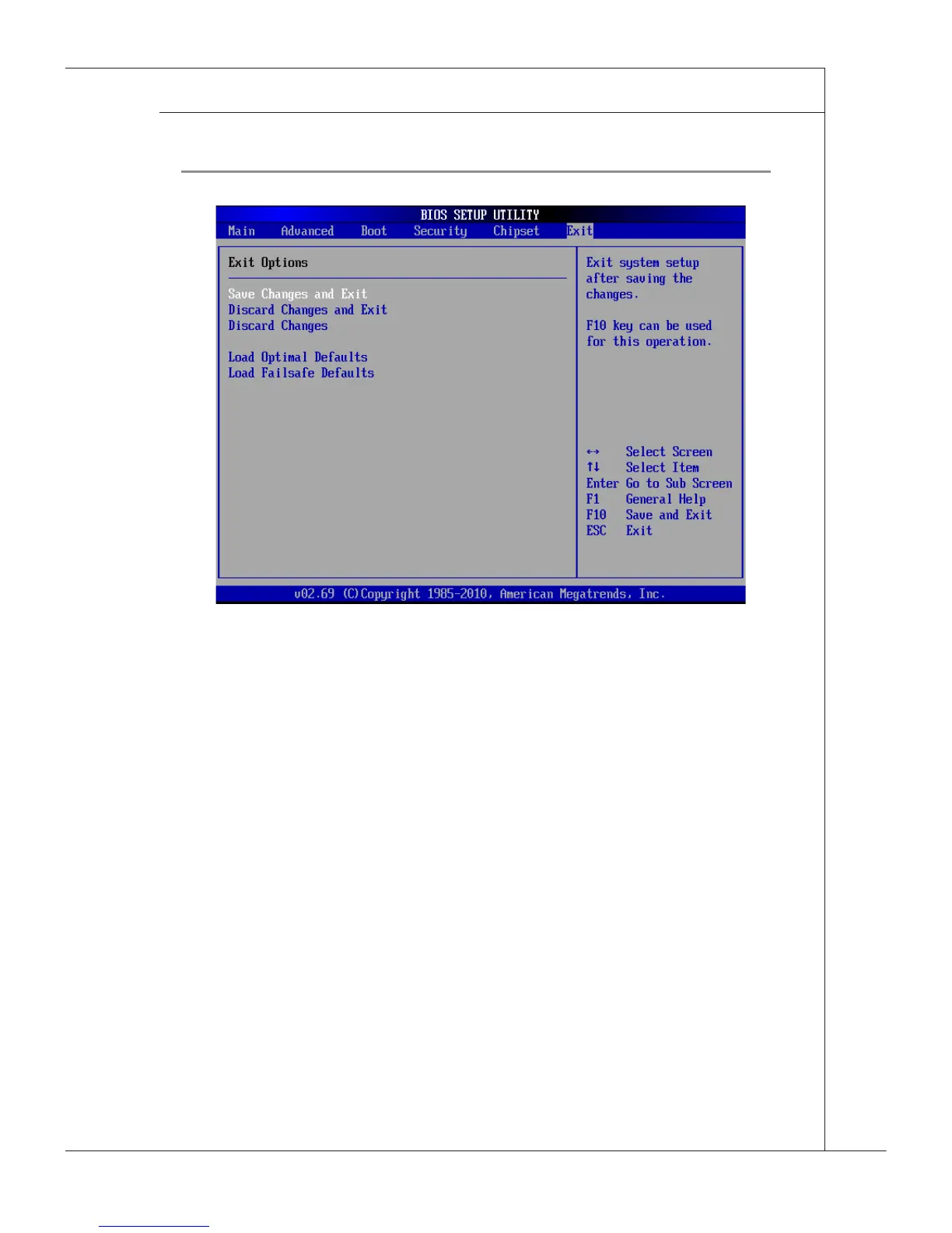 Abandon all changes and exit the Setup Utility.