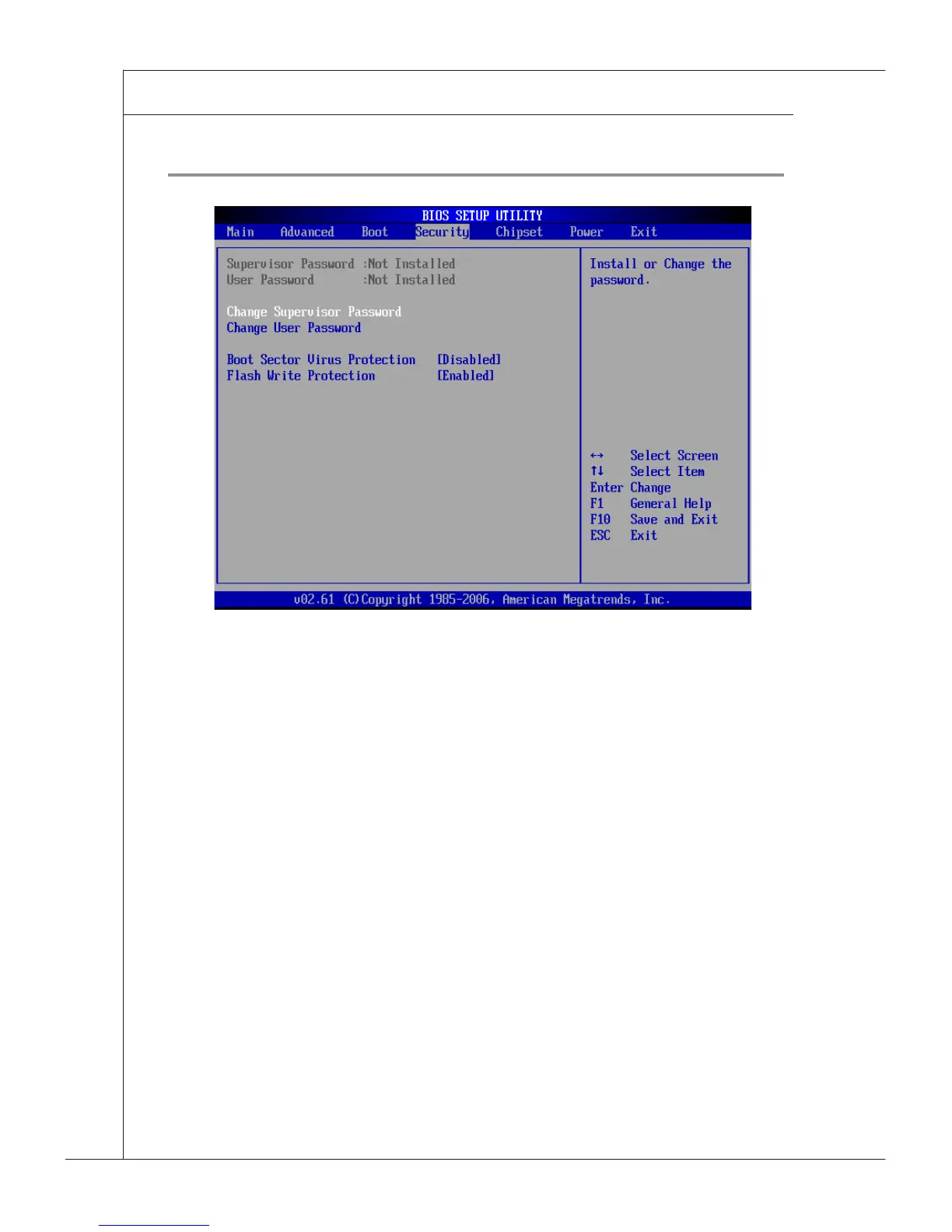 tings allow you to set or change the supervisor password.
