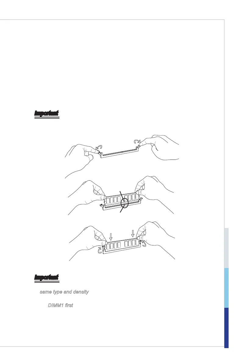 Insert the memory module vertically into the DIMM slot. Then push it in until