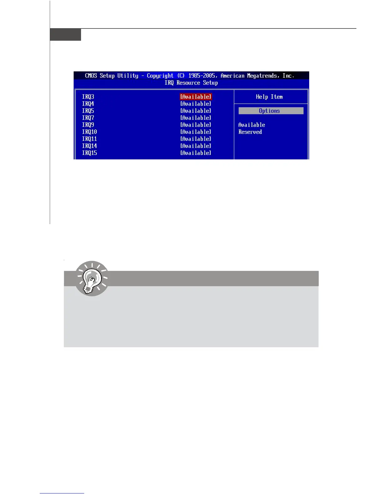 passed to devices that are configurable by the system BIOS. The available IRQ