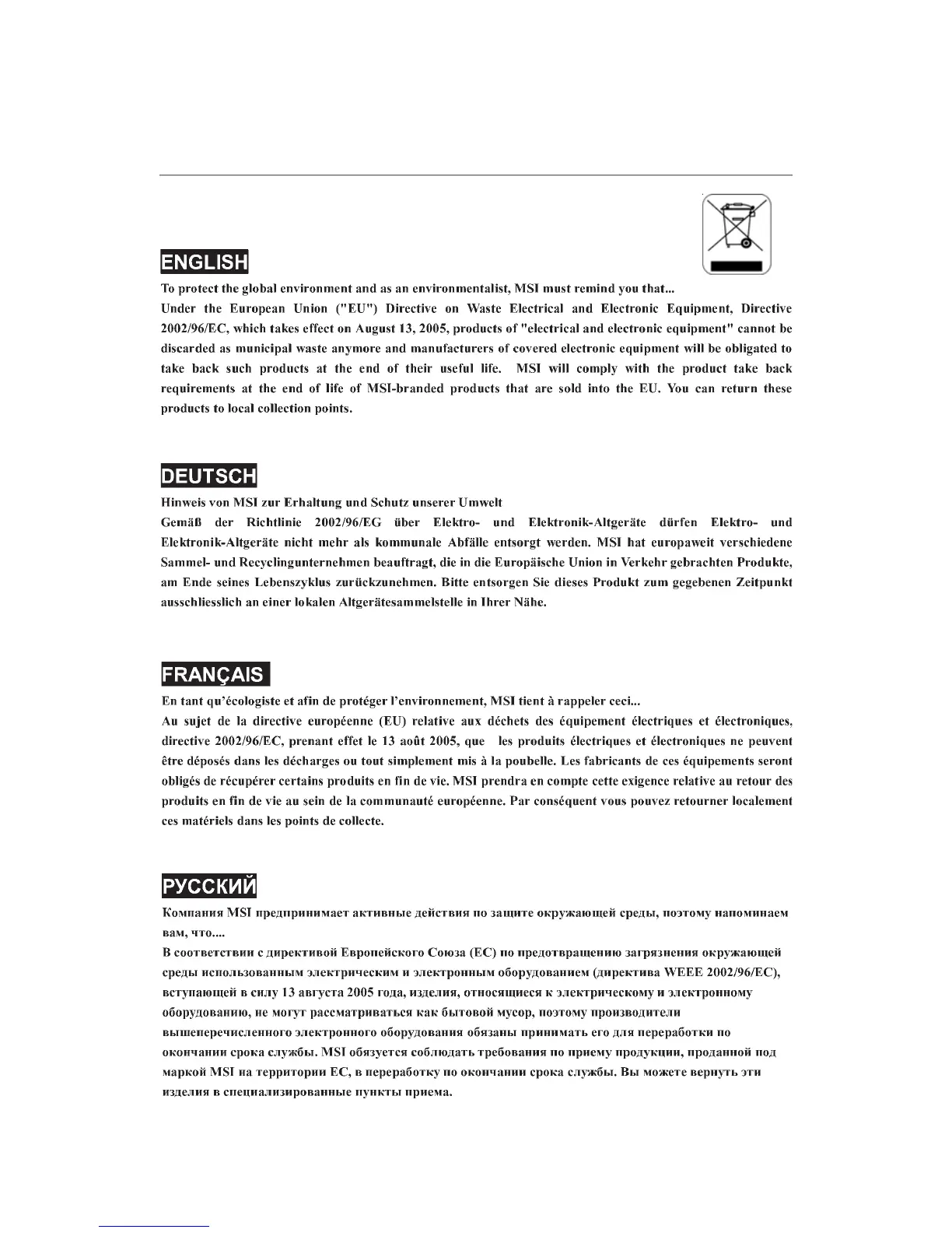 MSI NVIDIA MS-7504PV - WEEE (Waste Electrical and Electronic Equipment) Statement