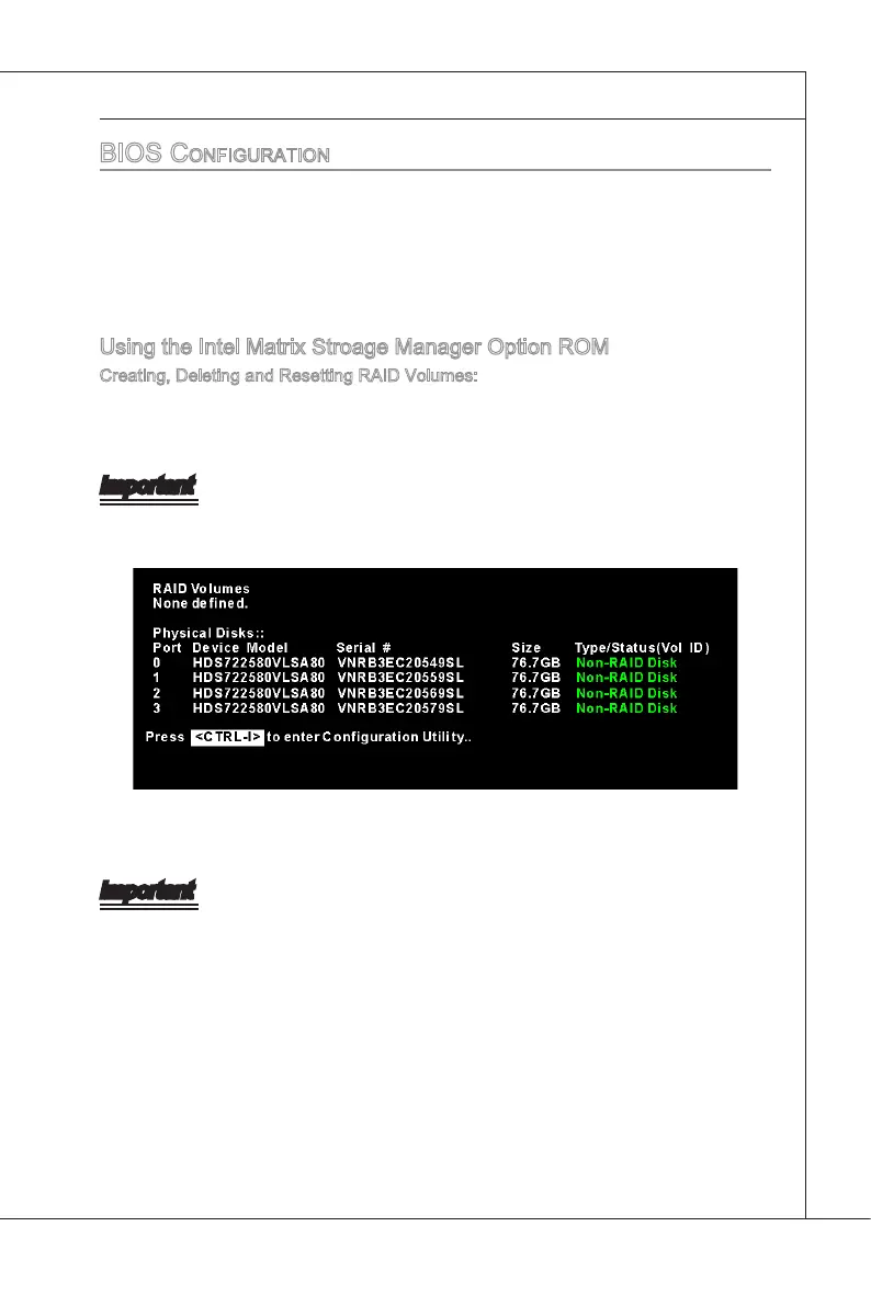 The Seral ATA RAID volume may be congured usng the RAID Conguraton utlty