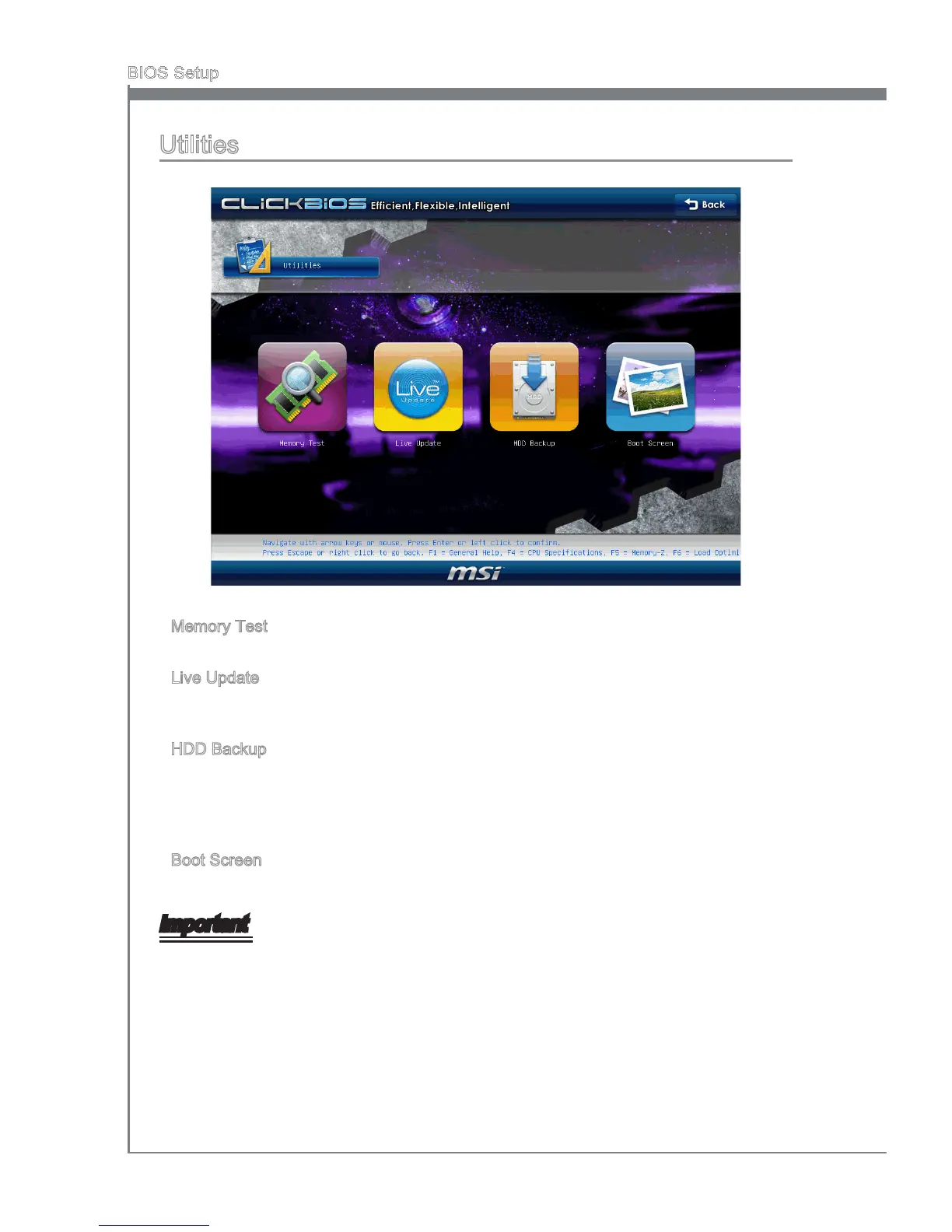 Before you enter to the Lve Update/ HDD Backup menu, please place the MSI Drver