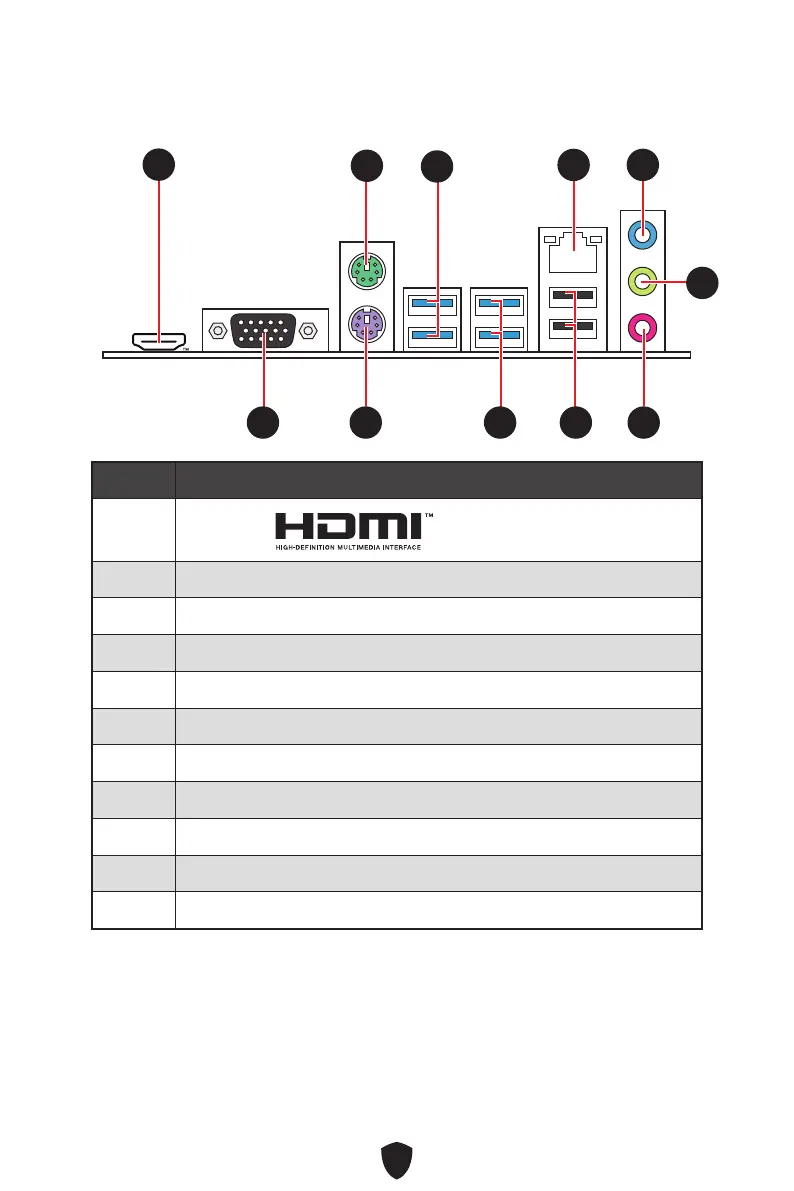MSI PRO A620M-E - Connecteurs du Panneau Arrière