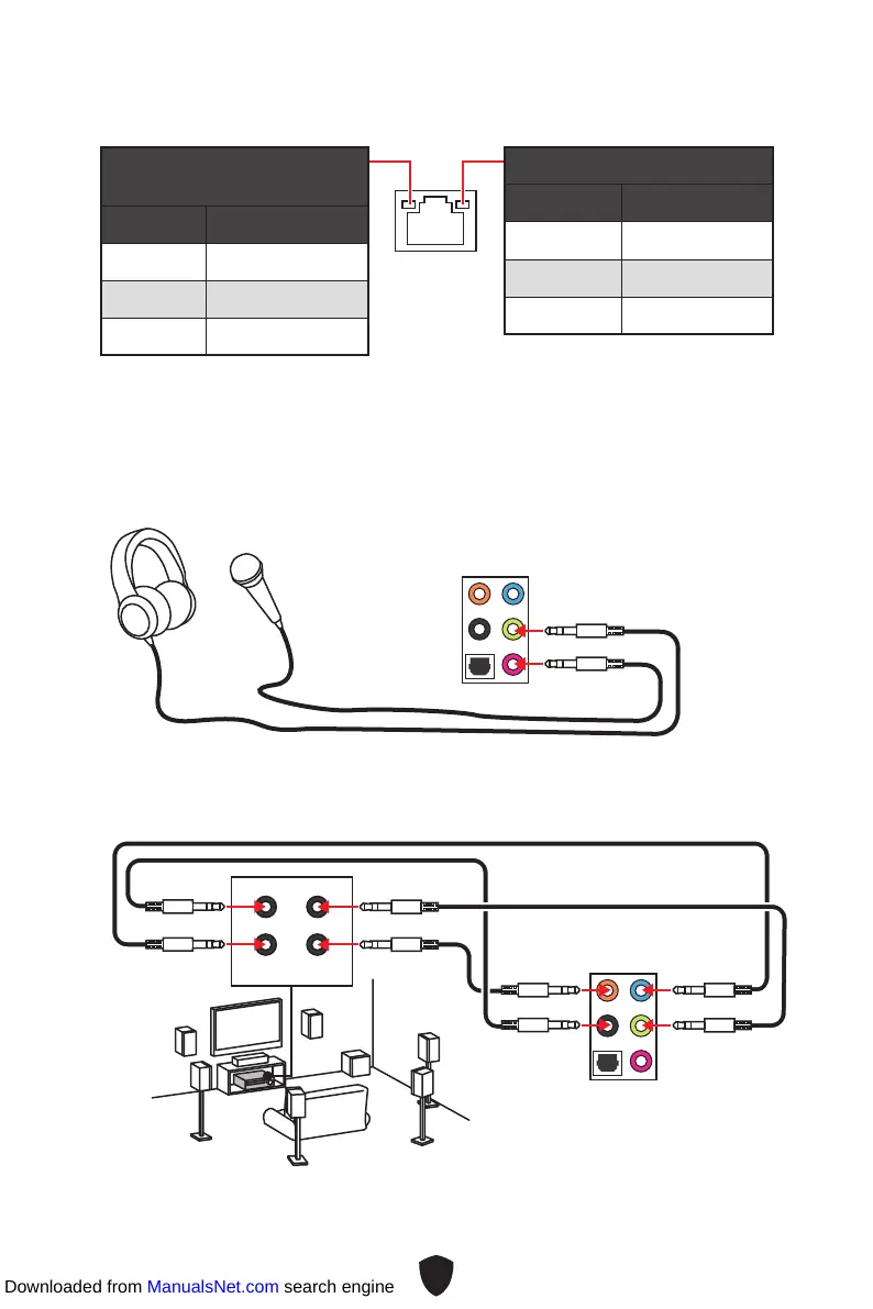 MSI PRO B660-A - Подключение Аудиоразъемов; Таблица Состояний Индикатора Порта LAN