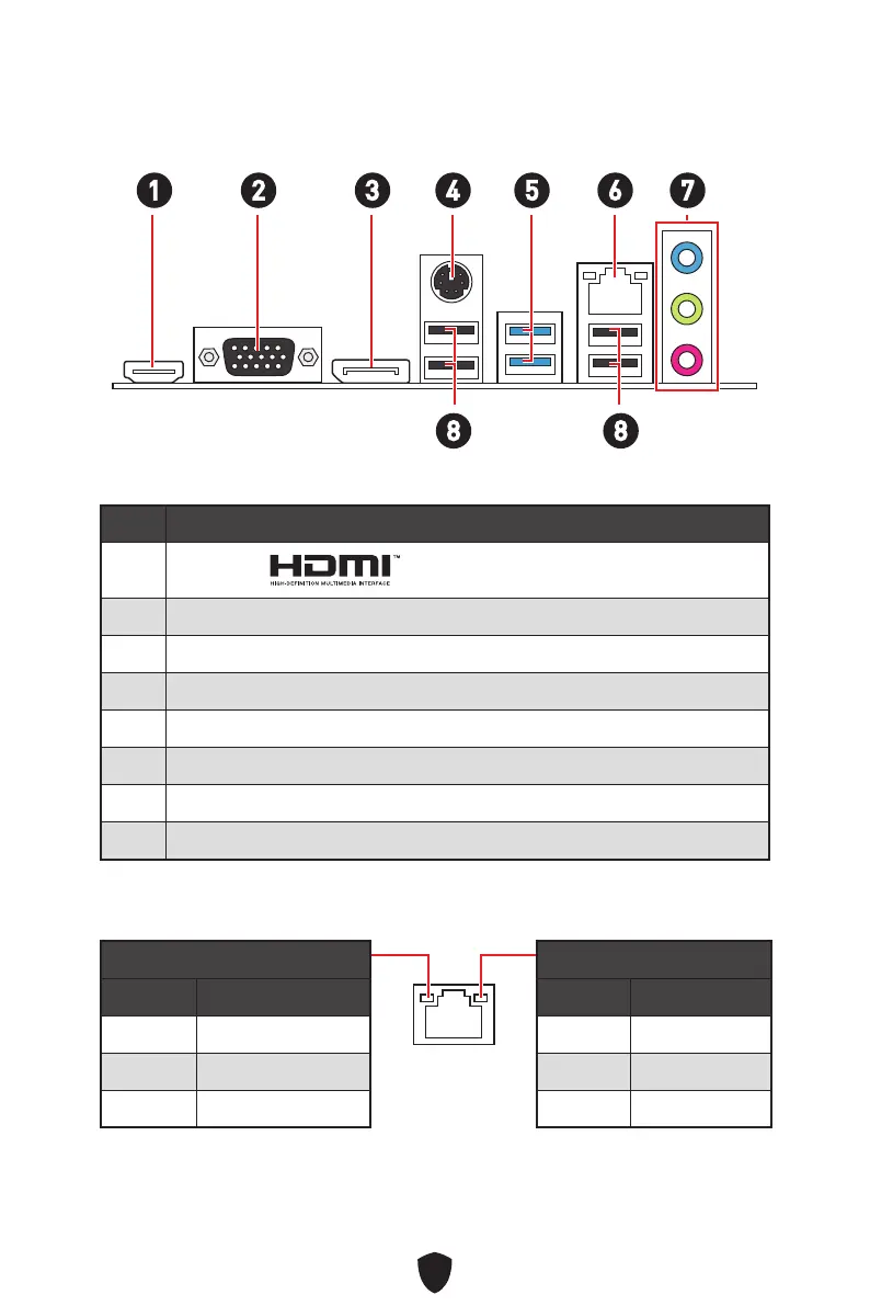 MSI PRO B660M-E DDR4 - LanポートLed状態表; バックパネルコネクター
