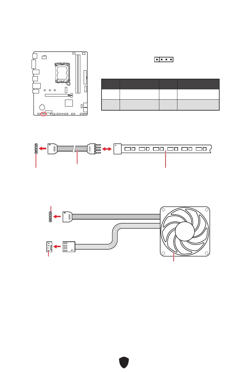 Le connecteur JRGB supporte des rubans LED RGB (12 V/G/R/B) de type 5050 d’une