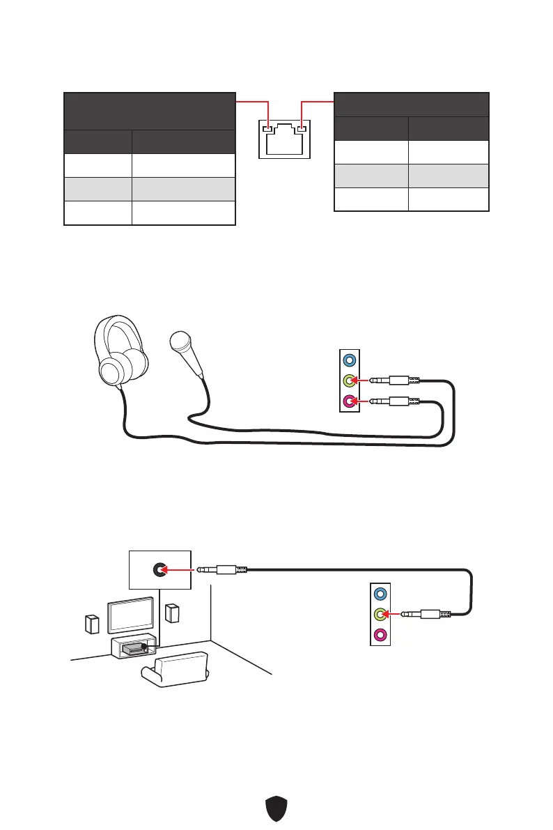 MSI PRO H610M-E - Подключение Аудиоразъемов; Таблица Состояний Индикатора Порта LAN