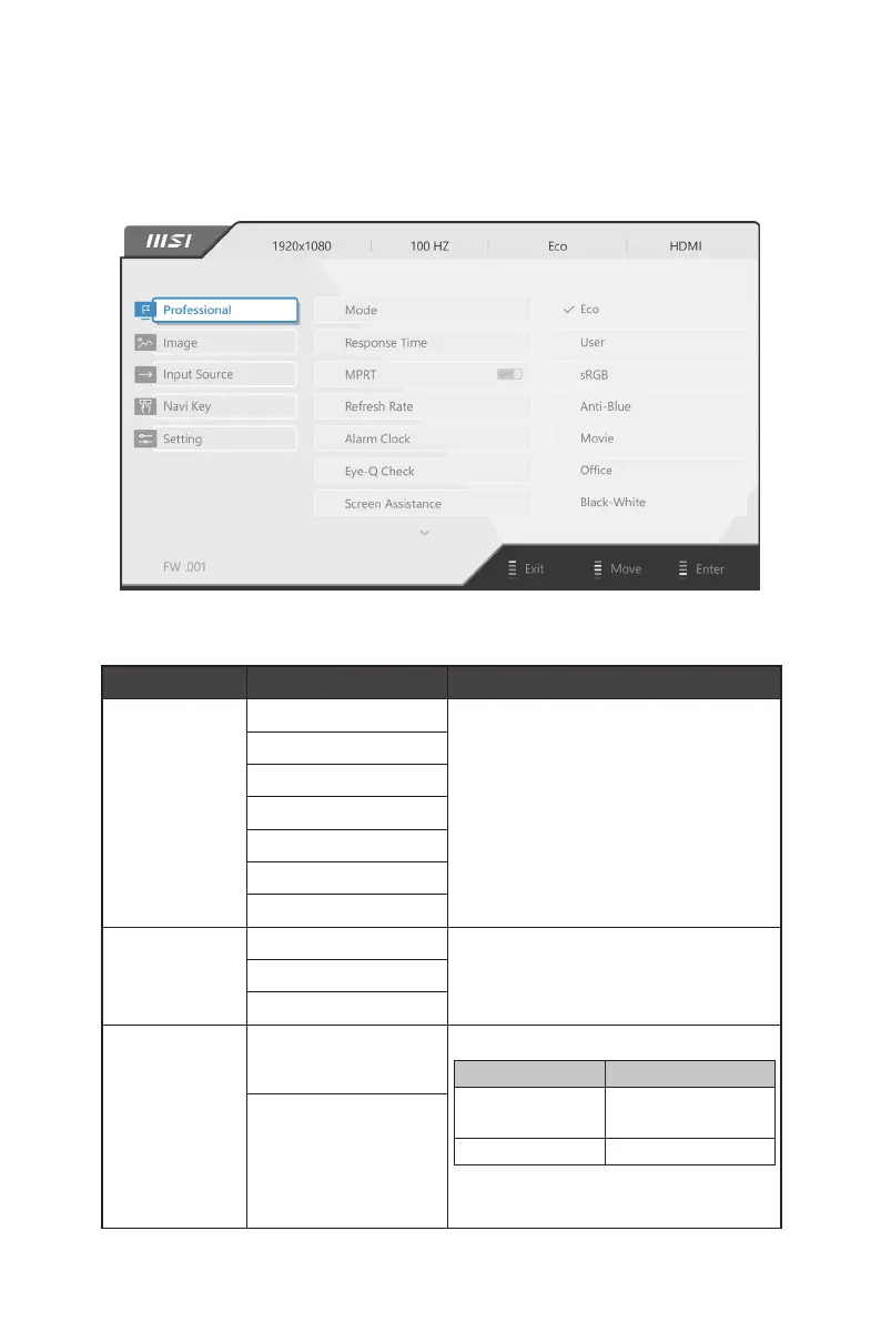 Mode Eco ∙ Use Up or Down Button to select and preview