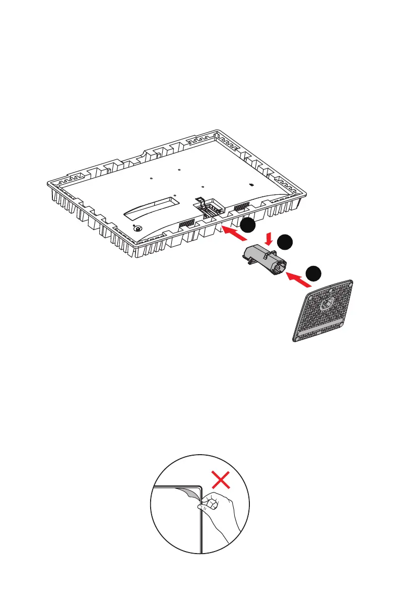 1. Leave the monitor in its protective packaging. Align and gently push the stand