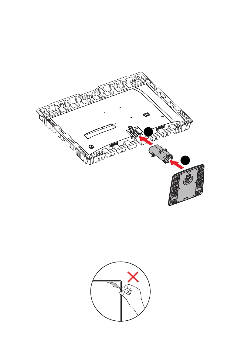 1. Leave the monitor in its protective packaging. Align and gently push the stand