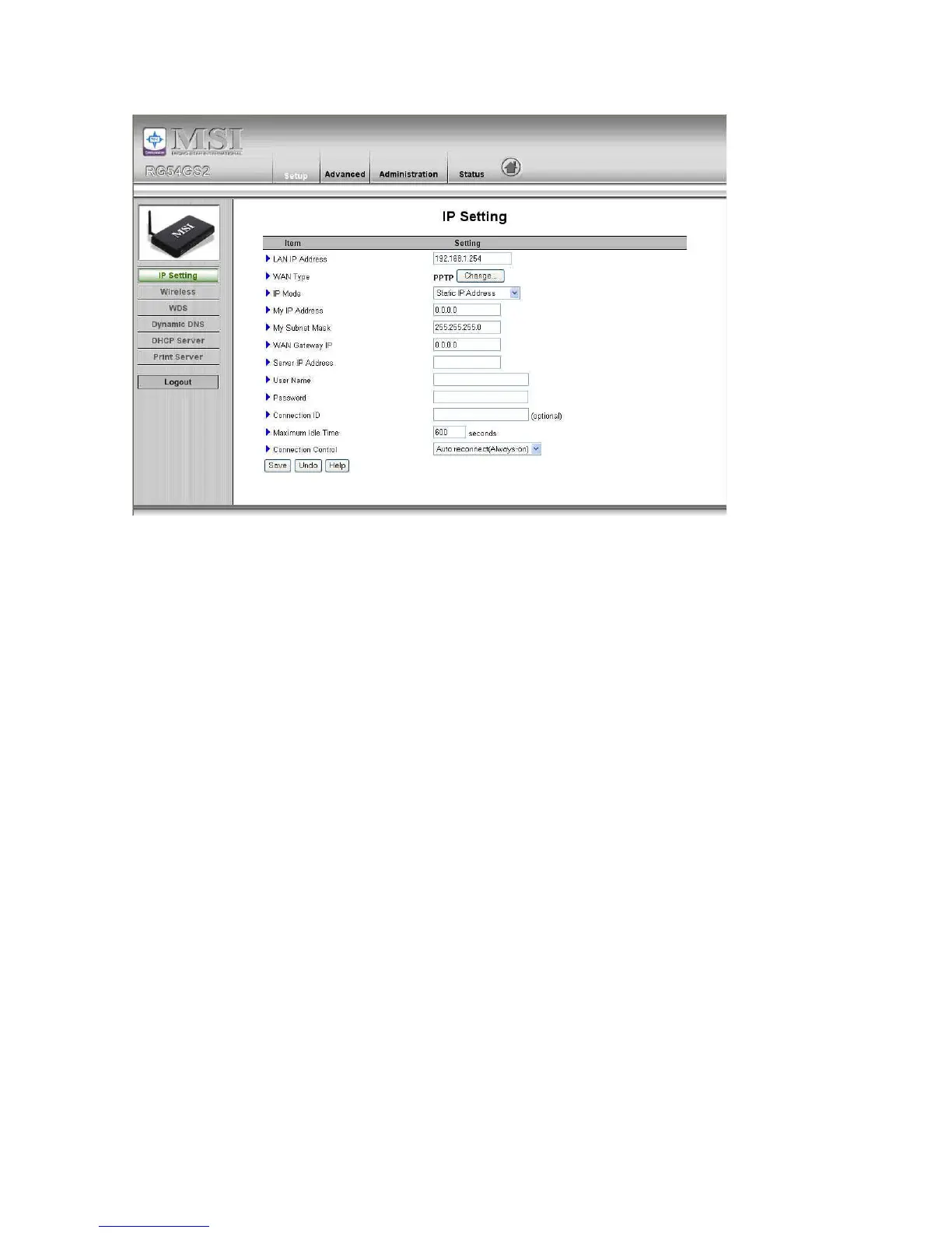4. Maximum Idle Time: the time of no activity to disconnect your PPTP session. Set it to zero or