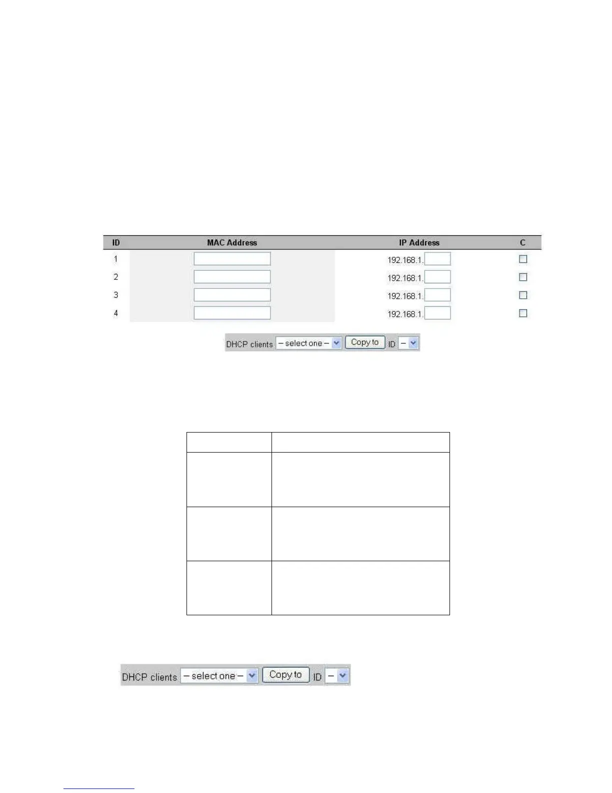 "Control table" is the table at the bottom of the "MAC Address Control" page. Each