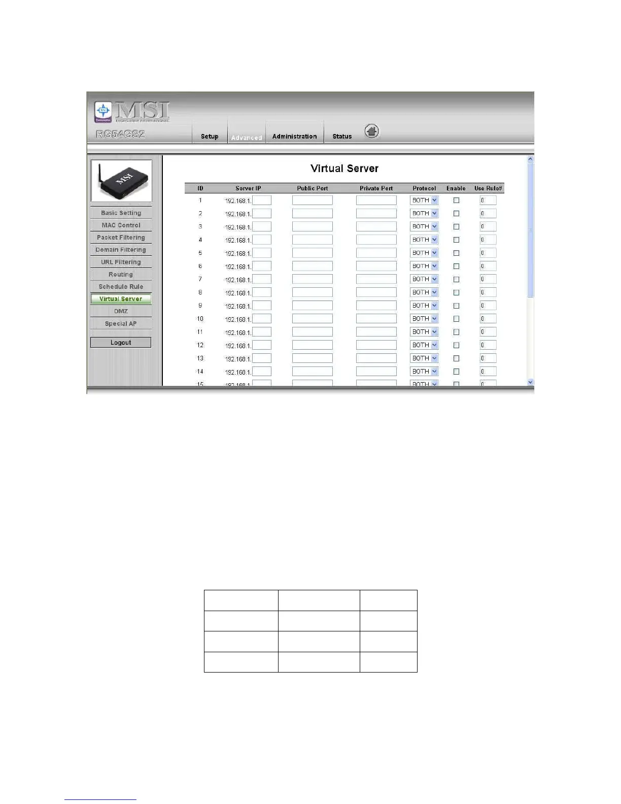 by the Server IP. Virtual Server can work with Scheduling Rules, and give user more flexibility on Access