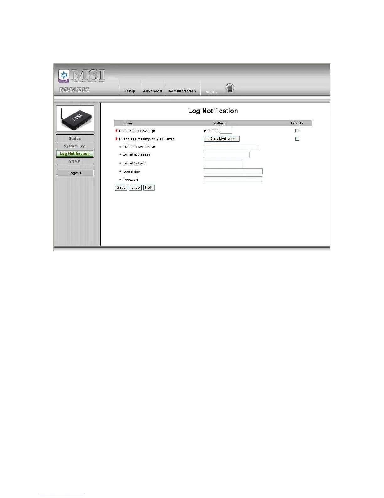 This page support two methods to export system logs to specific destination by means of syslog(UDP) and