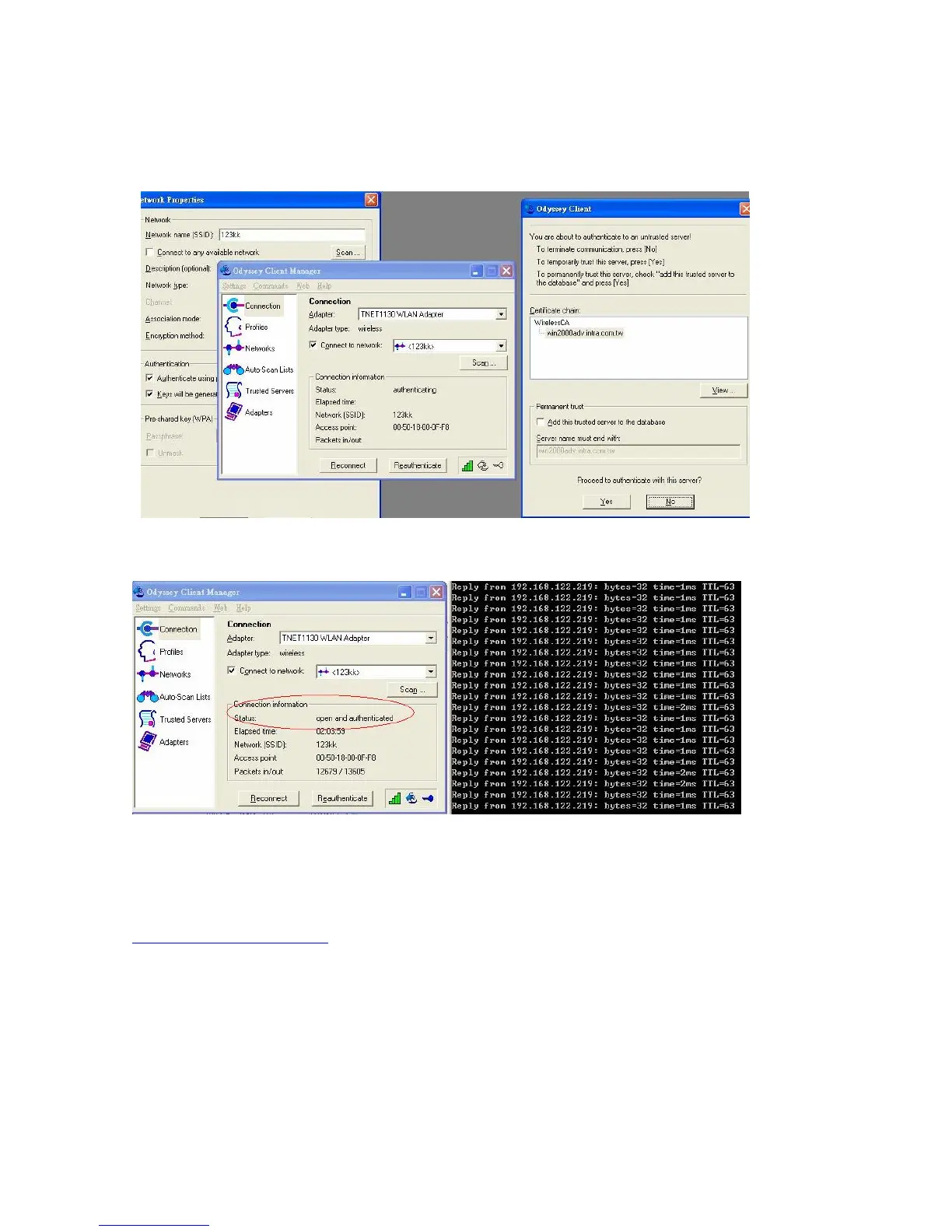 If successfully, the wireless client has to authenticate with Radius Server, like below: