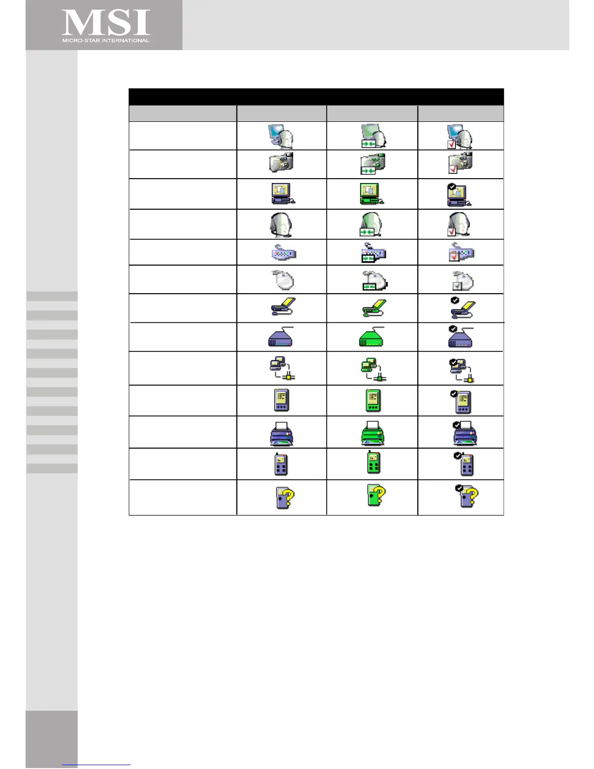Table 2 : Device Icons for Windows 98, Windows Me, and Windows 2000