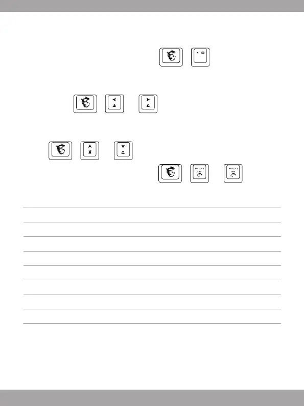 • Длянастройкияркостиподсветкивыбраннойзоныклавиатурынажмите