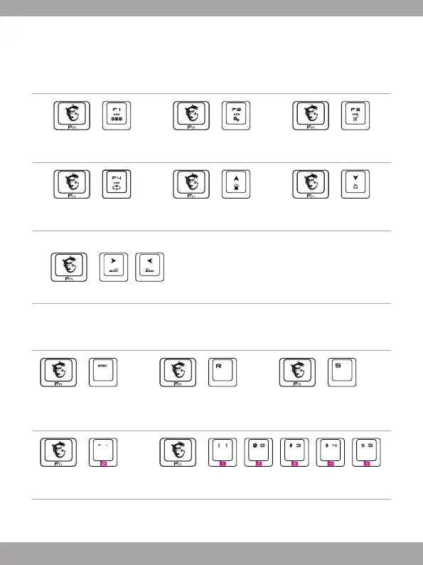以下に表示されたホットキーを使って、バックライトプロファイルおよびRGBパレットをカ