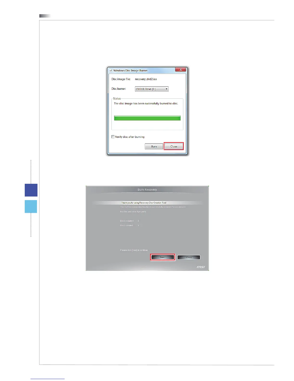 Follow the on-screen instructions to create all recovery discs.