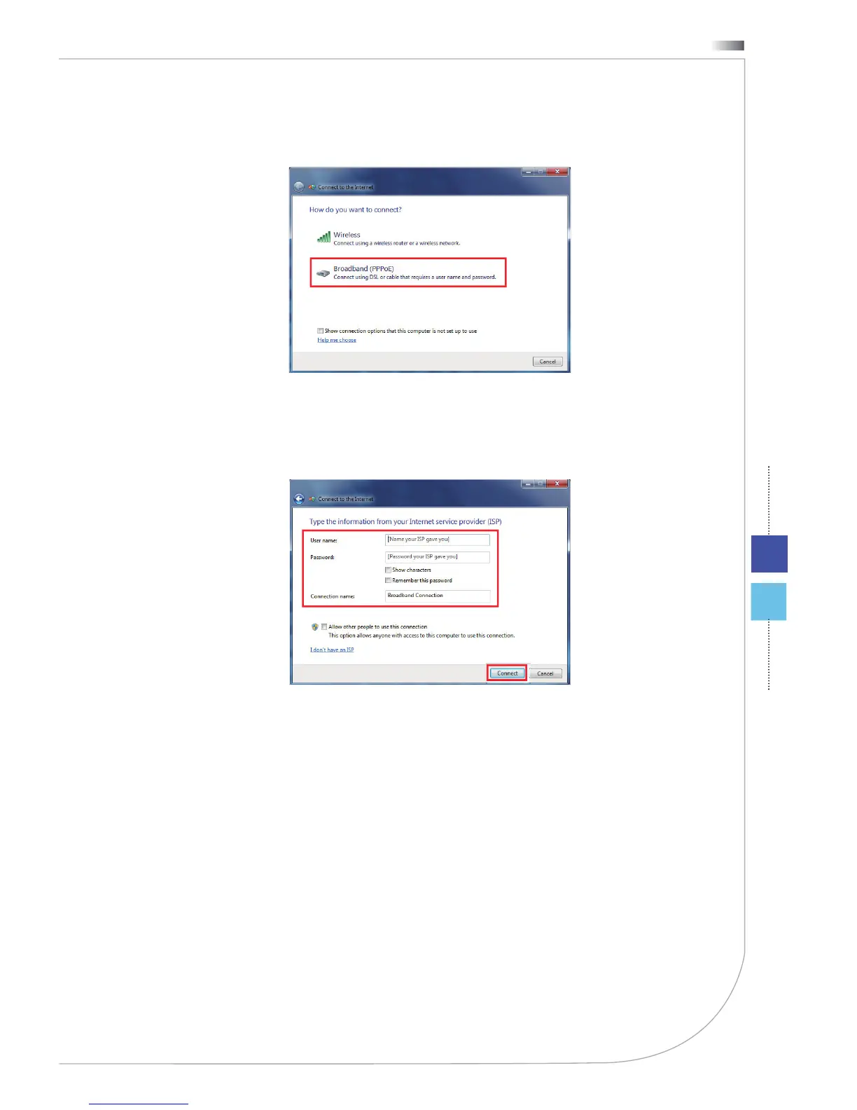 4. Type the information from your Internet Service Provider (ISP) and click