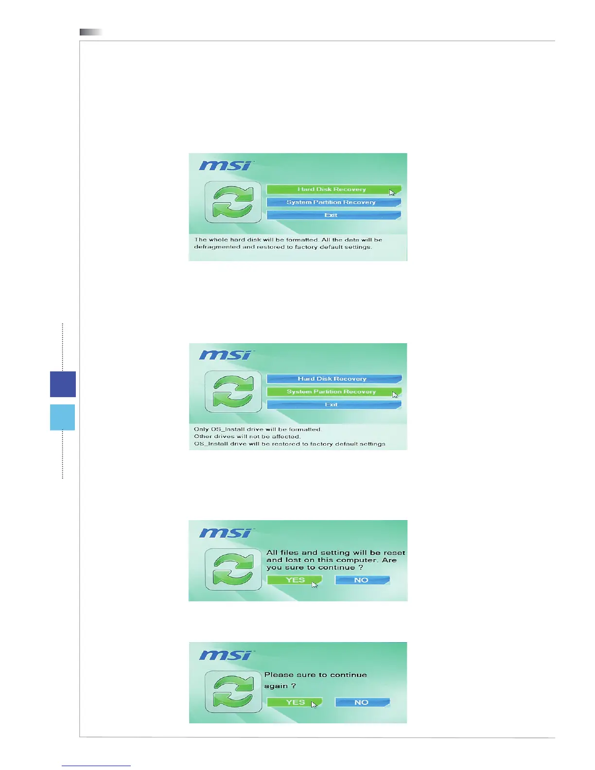 Click [YES] again to reconfi rm; click [NO] to stop the system recovery.