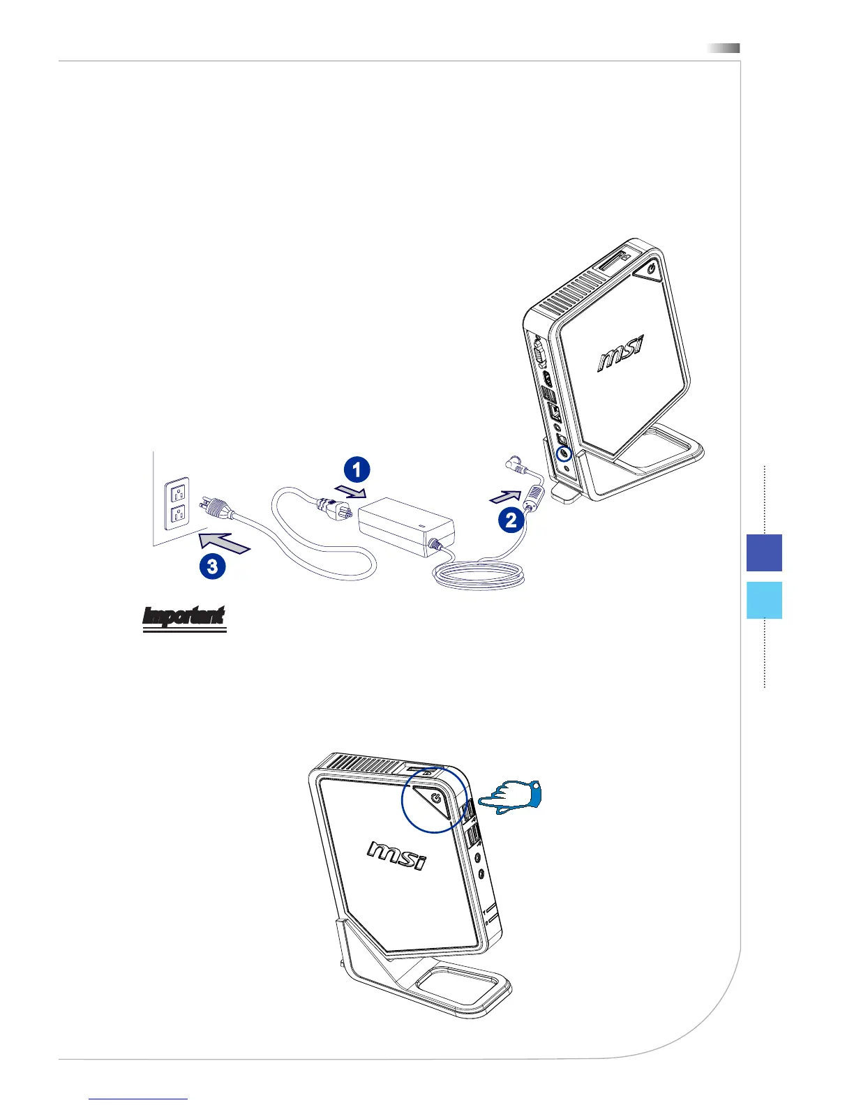 3. Plug the male end of the AC power cord to the electrical outlet.