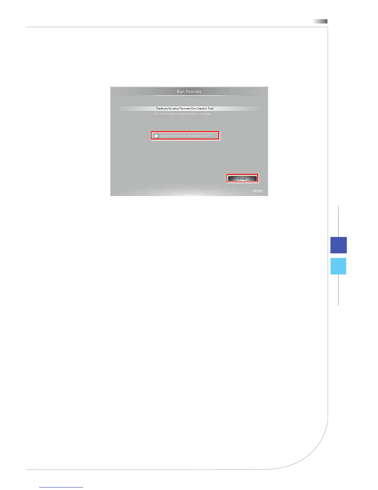 9. Check the following box if you want to remove the temporary les. Click [Fin-
