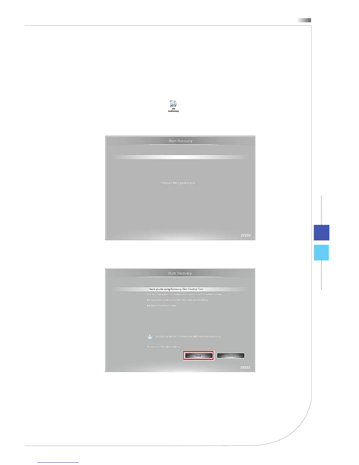 1. Double-click the “BurnRecovery” icon on the desktop to launch the