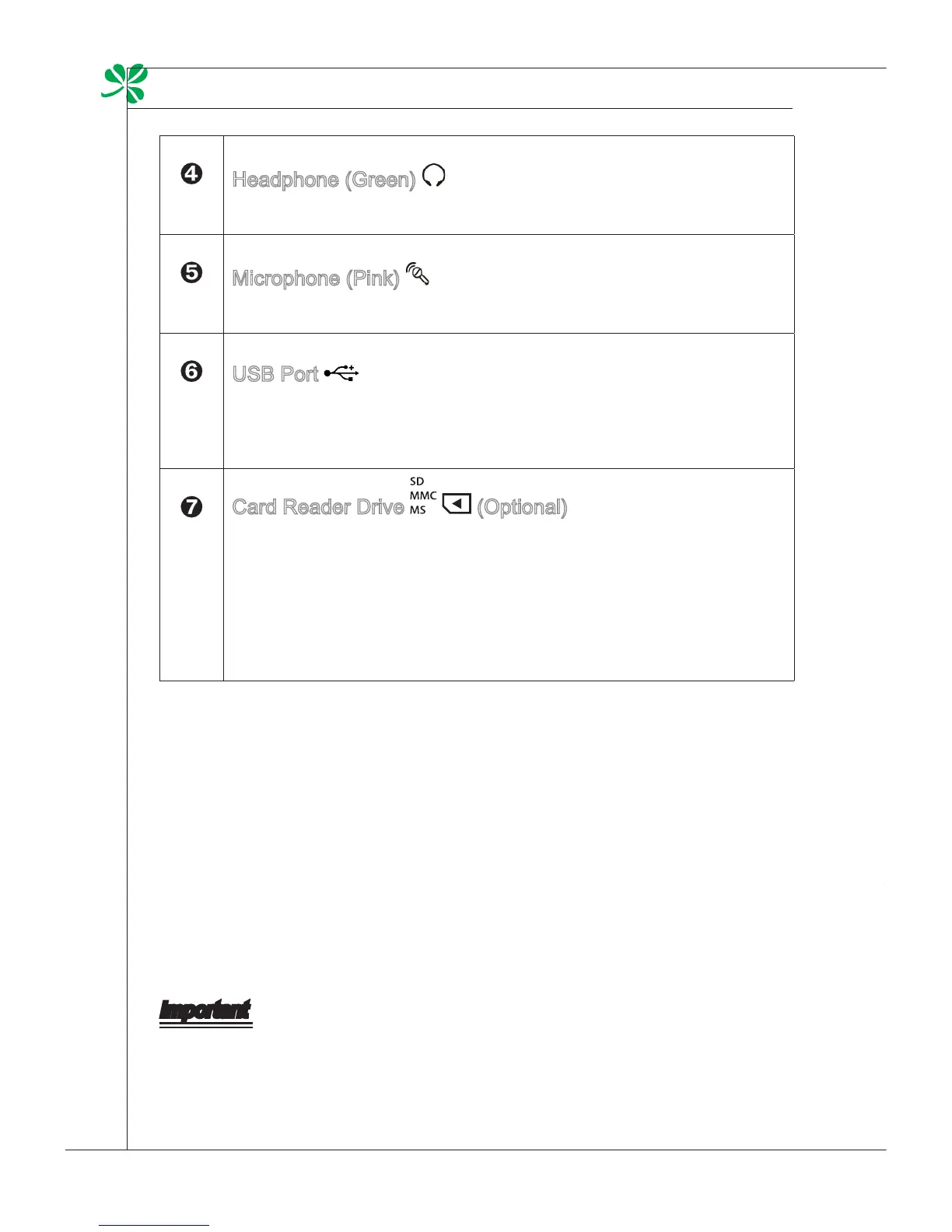 The USB (Universal Serial Bus) port is provided for attaching USB devices