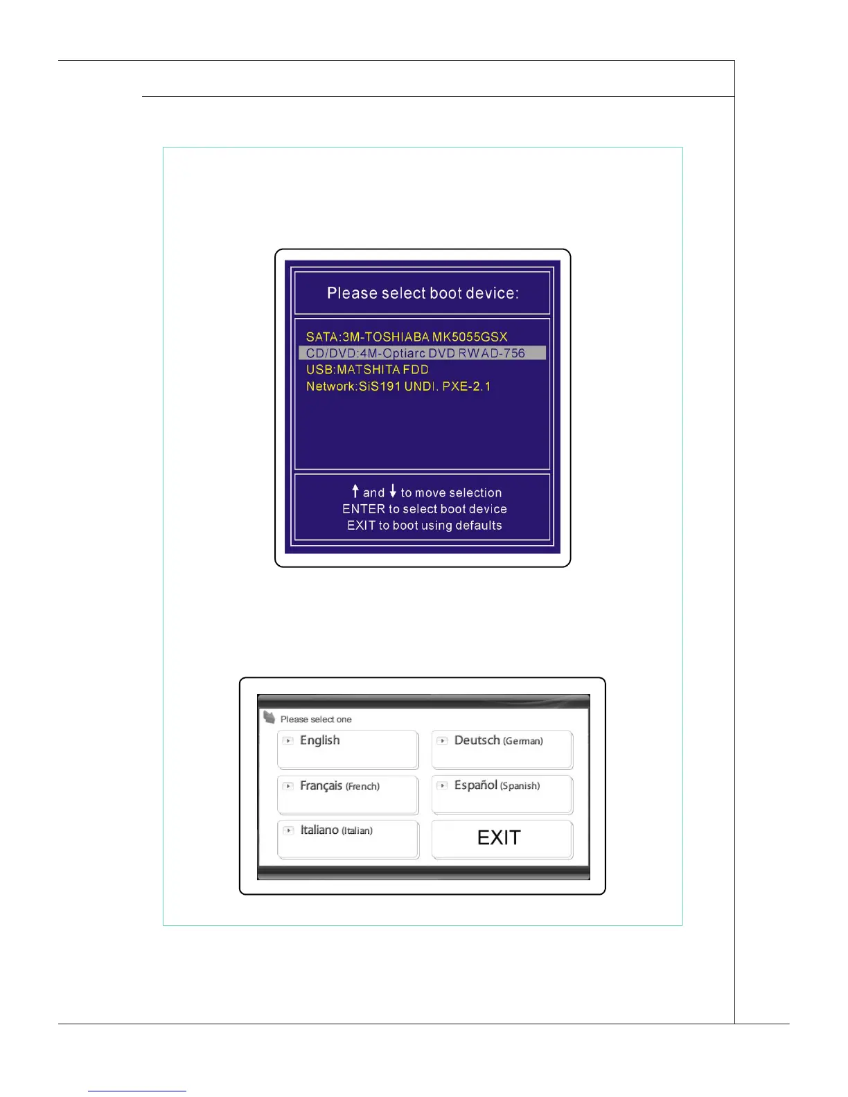 3. Select the [CD/DVD] device as the boot device and press [Enter] to conrm