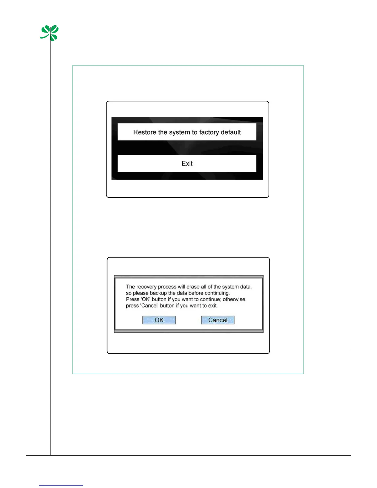 cess. Click [OK] to continue; click [Cancel] to stop the system recovery