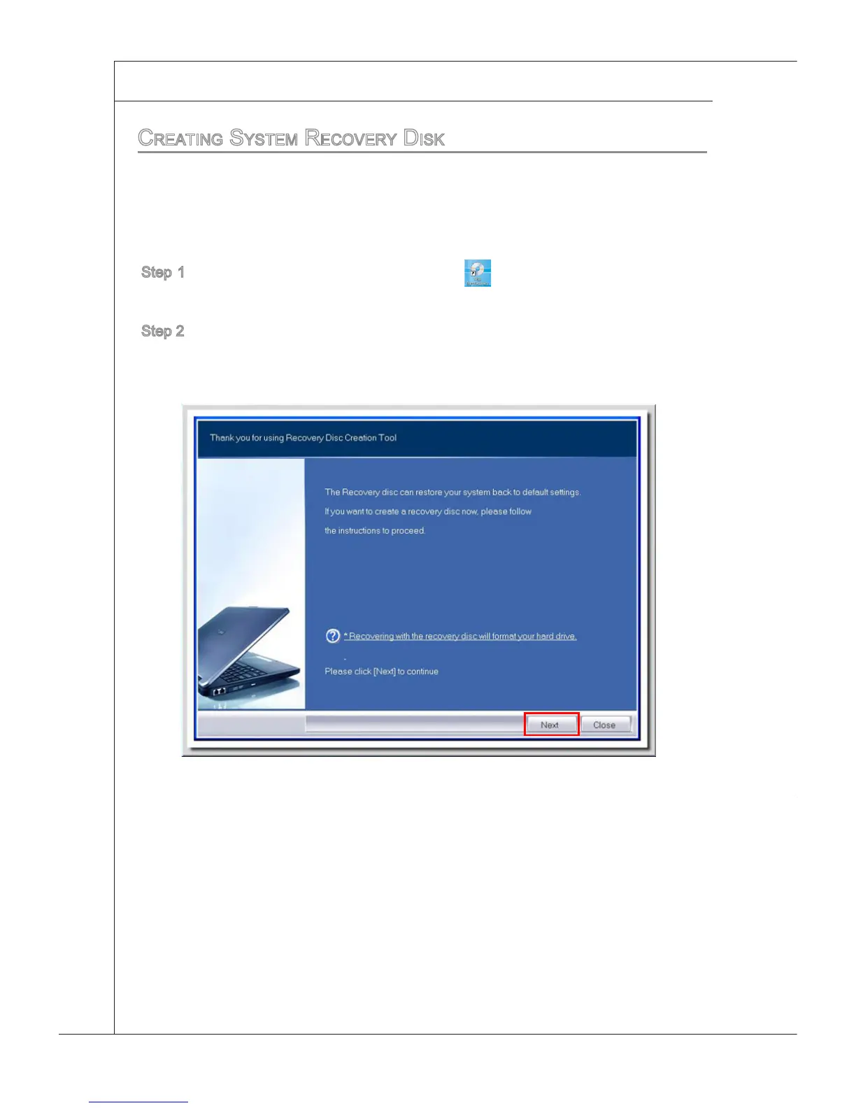 For the rst-time use, it is required for you to create a system recovery disk as the back-
