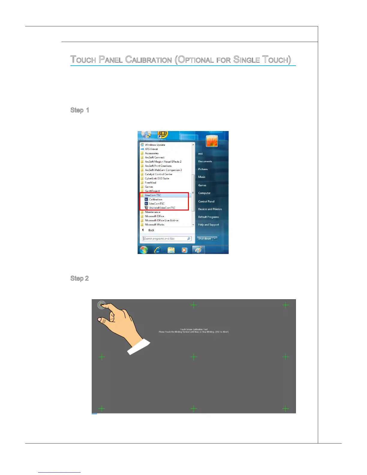 toUcH Panel calibration (oPtional for single toUcH)