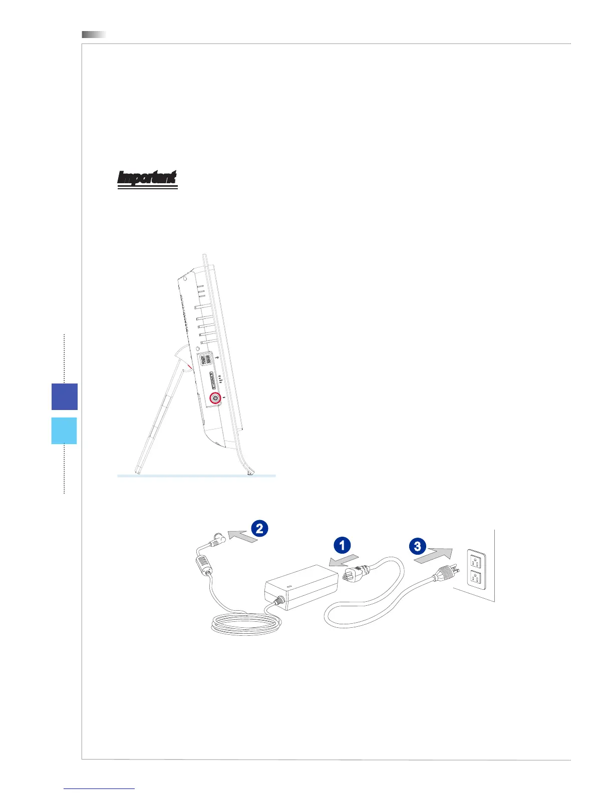 We suggest that you connect the AC/DC adapter to your AIO PC 󰘰rst and then