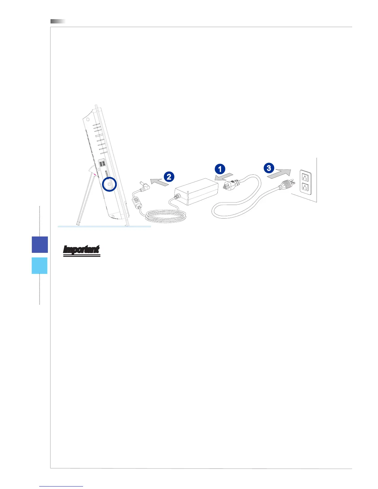 We suggest that you connect the AC/DC adapter to your AIO PC 󰘰rst and then connect