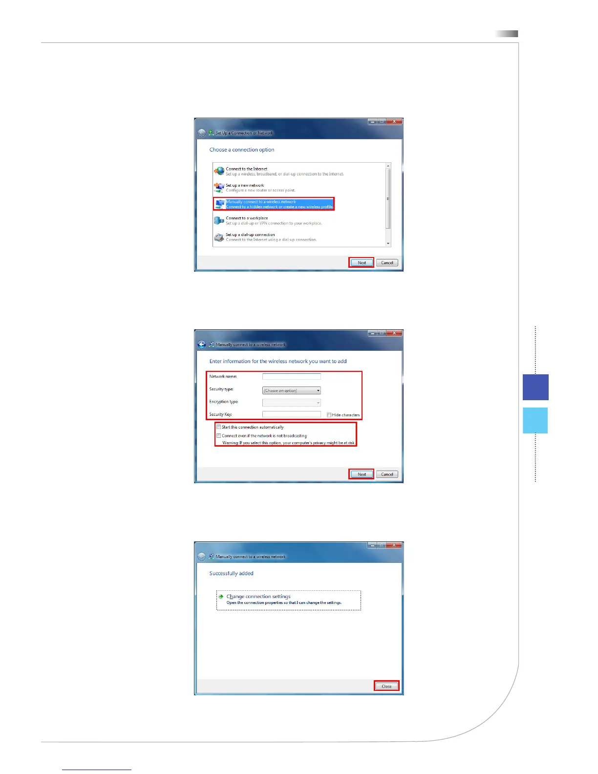 6. Followingly, choose [Manually connect to a wireless network] and click [Next] to