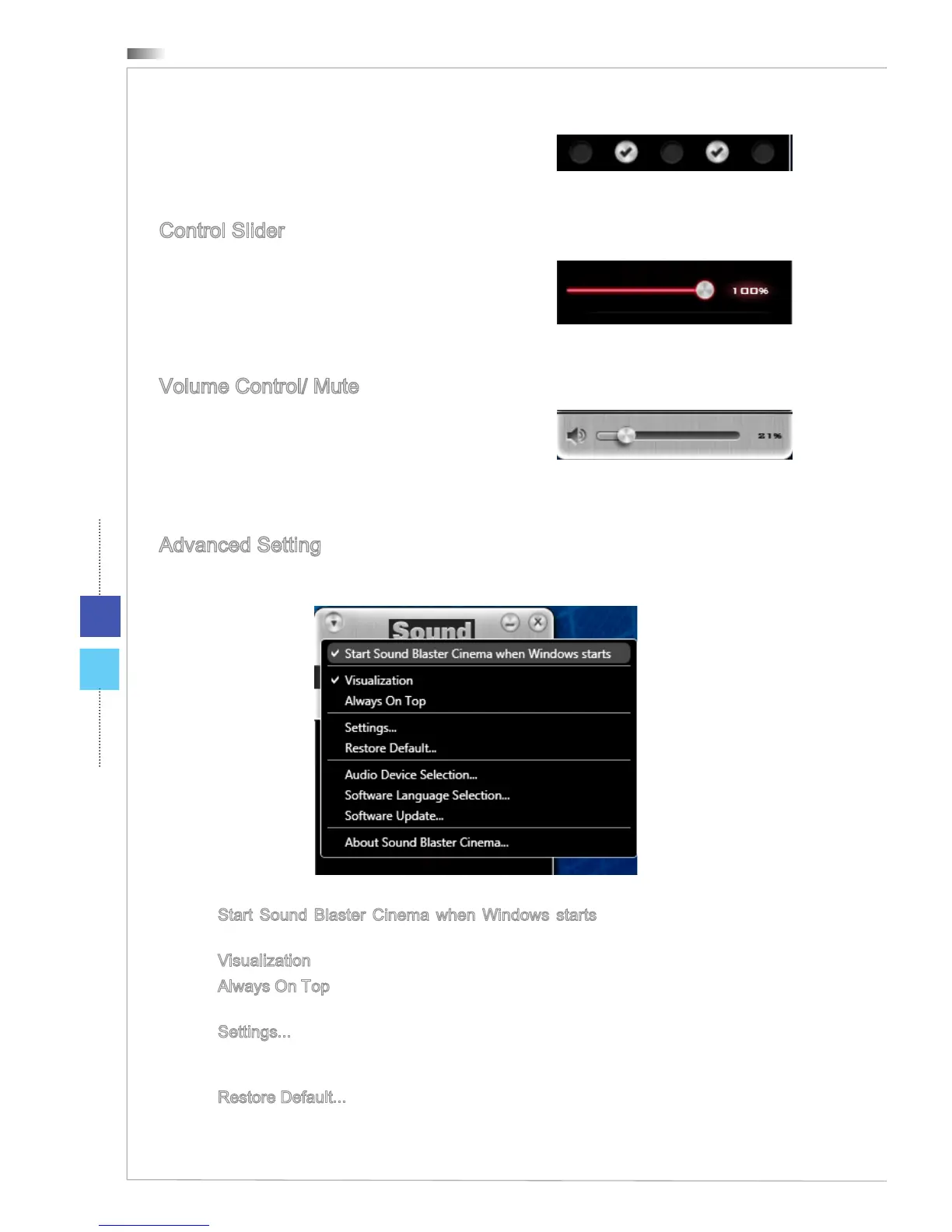Always On Top - Check this if you wish Sound Blaster Control to be always the