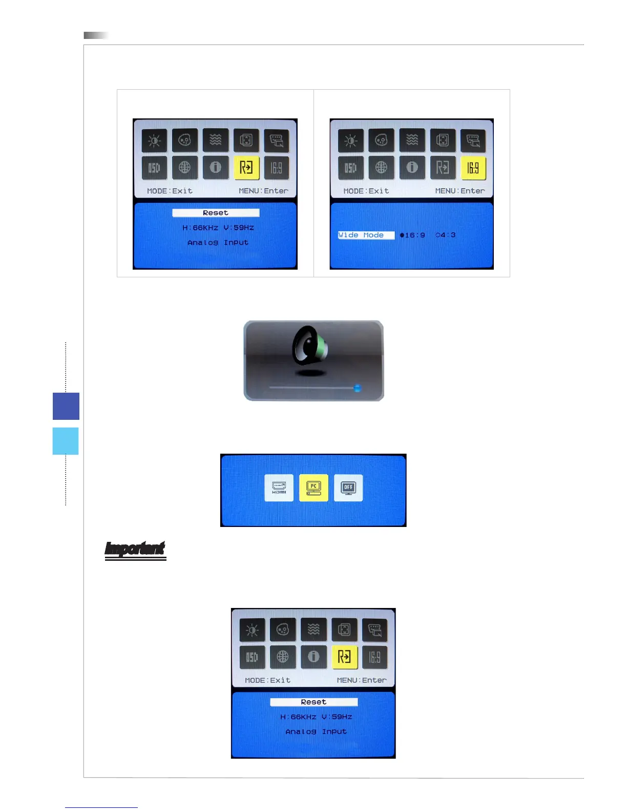 Resetting system Adjusting wide screen mode