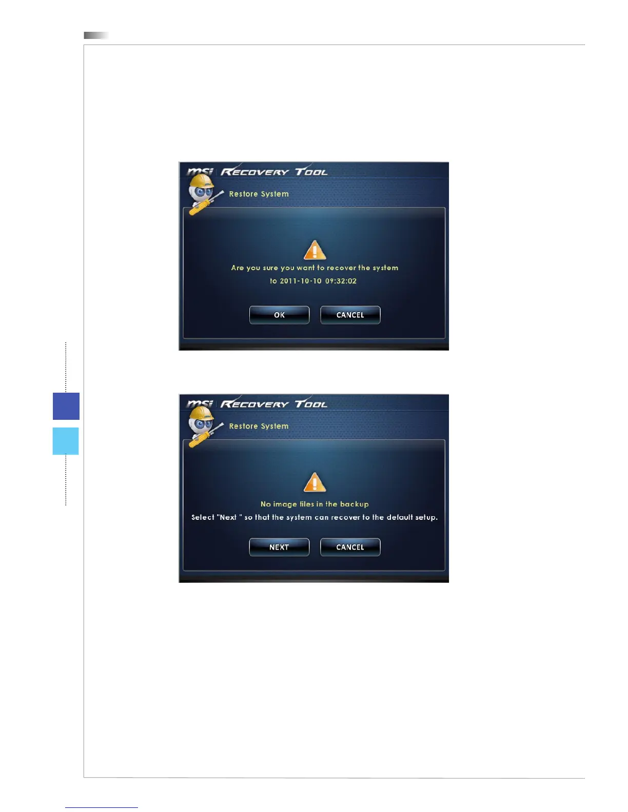 2. Select [OK] or [NEXT] so that the system can recover to the previous backup or de-