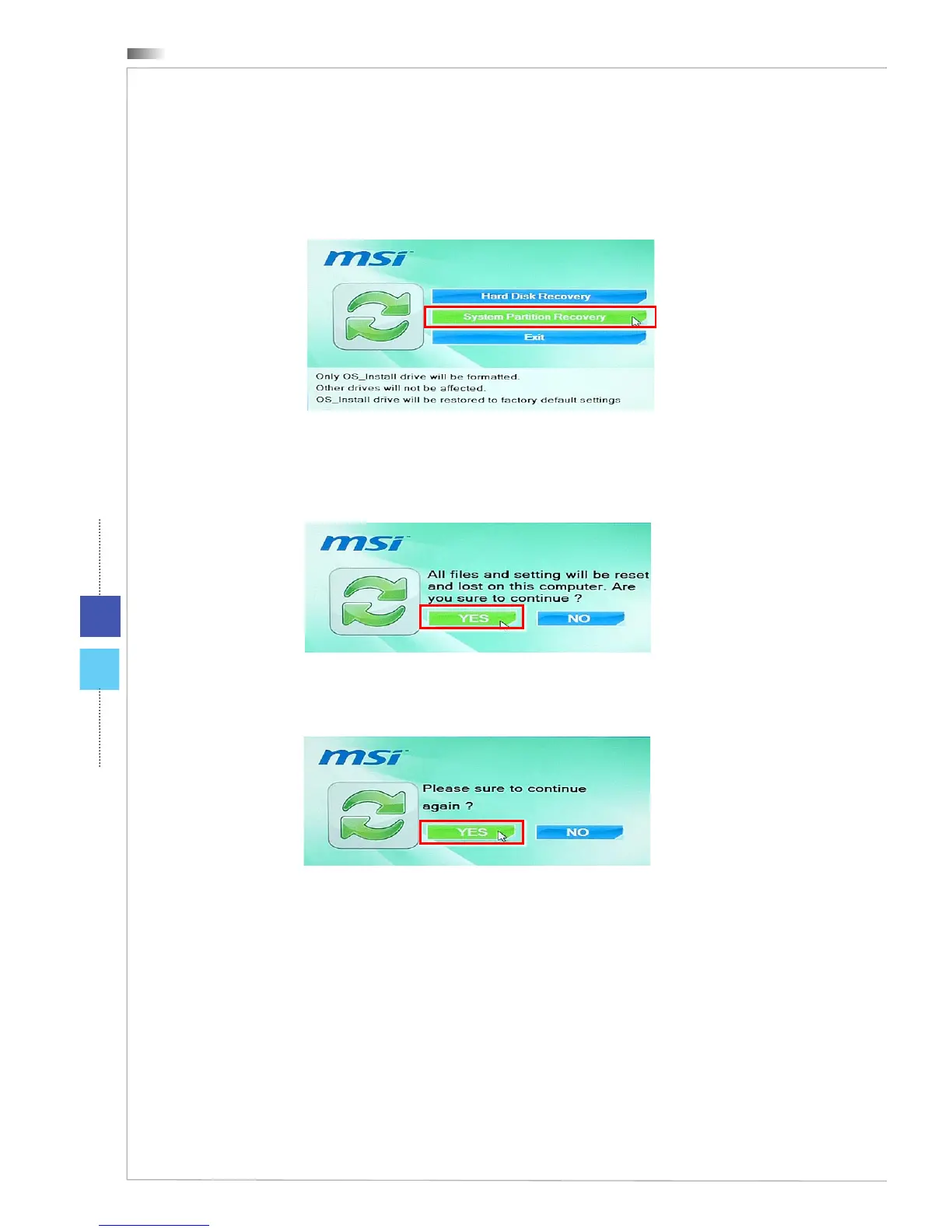 Click [YES] again to reconrm; click [NO] to stop the system recovery.