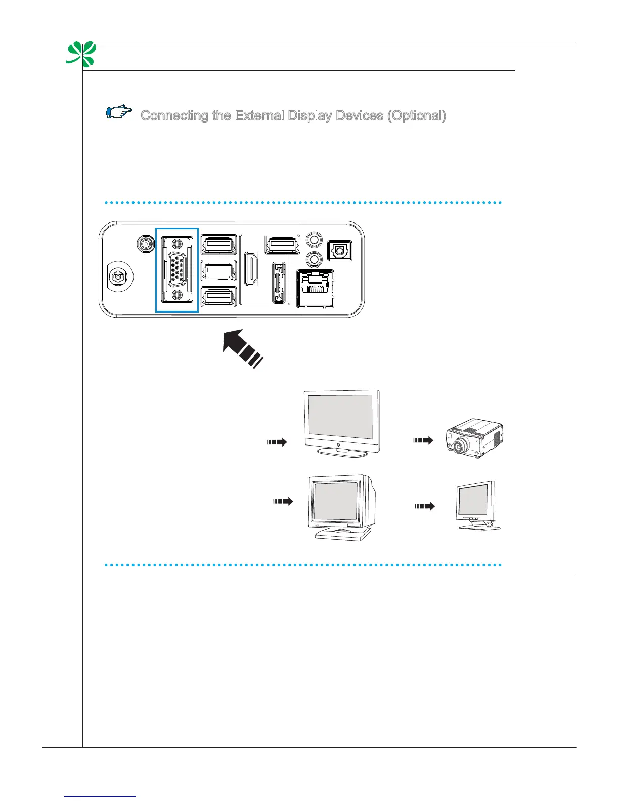 tion. The 15-pin-D-sub VGA port allows users to connect an external monitor or