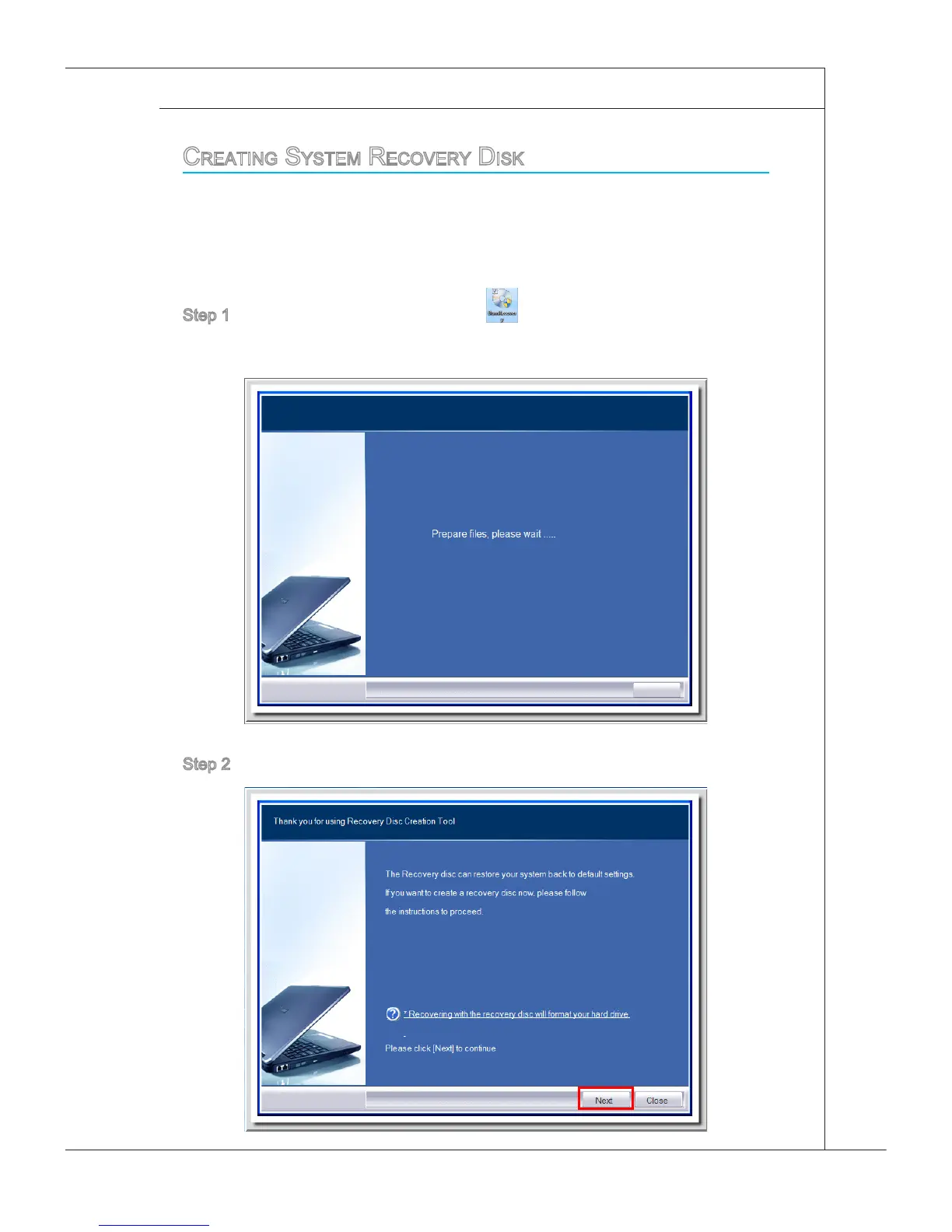Recovery Disc Creation Tool. Please note that it may take a while for the