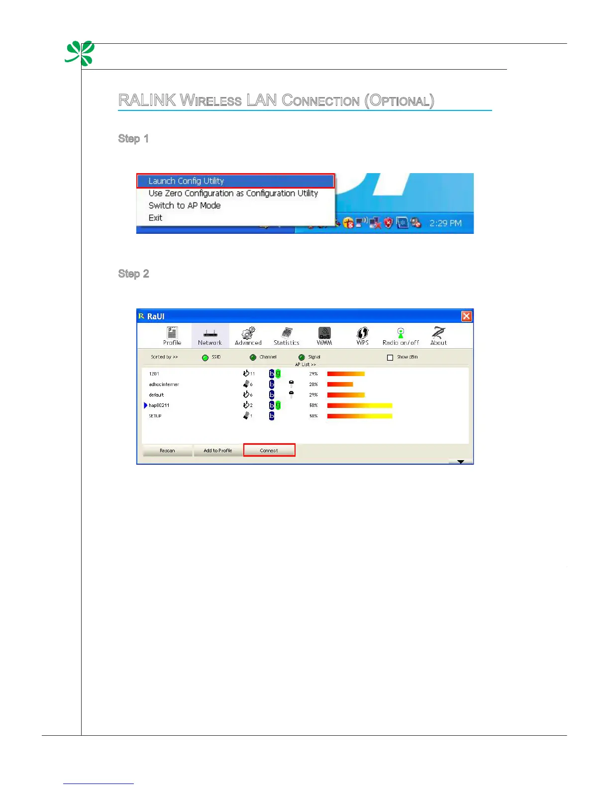 Step 1. Right-click the Ralink Wireless LAN Card status icon in the lower right