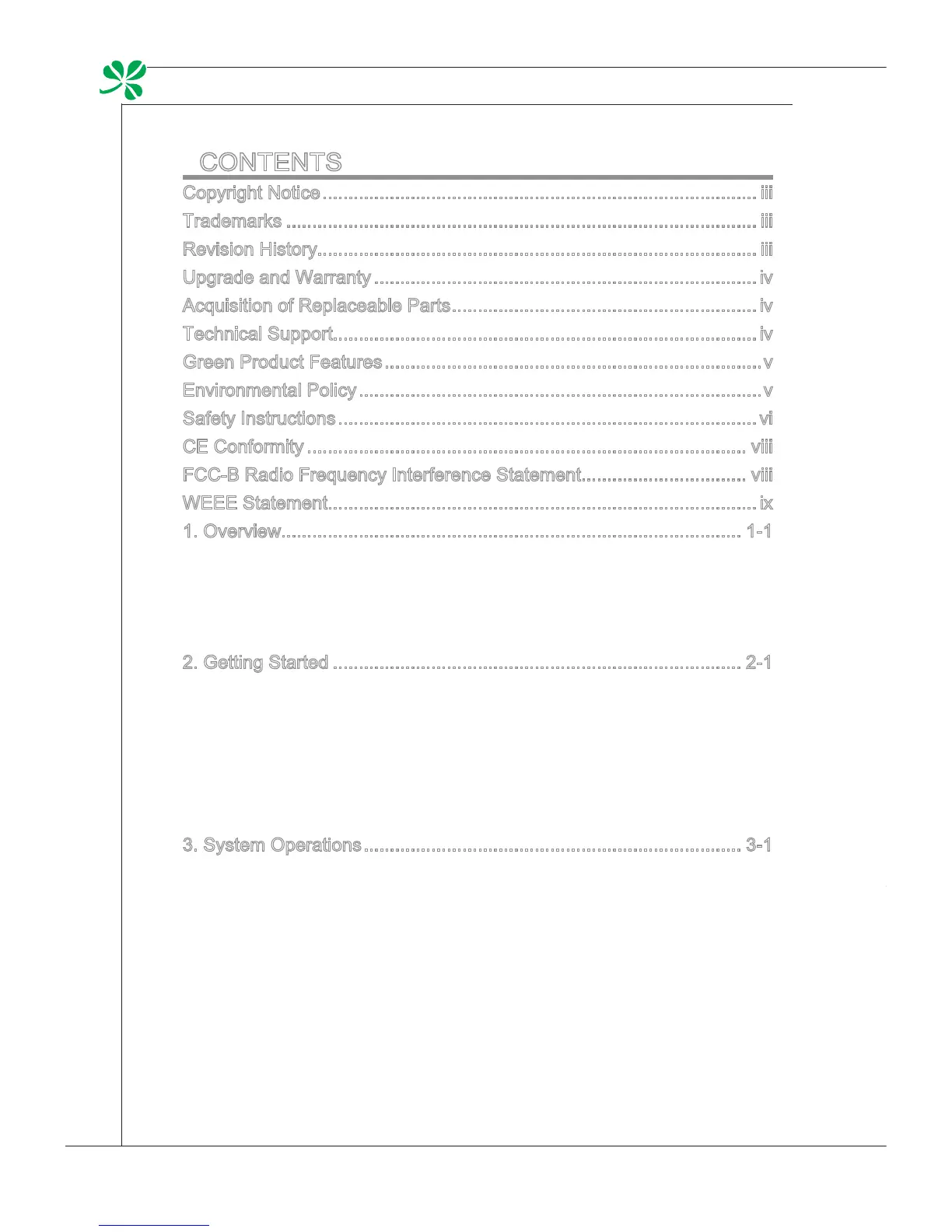 MSI Wind Top AE2210 - Table of Contents