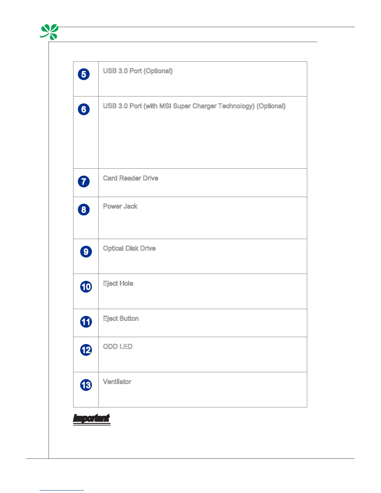 USB 3.0 Port (with MSI Super Charger Technology) (Optional)