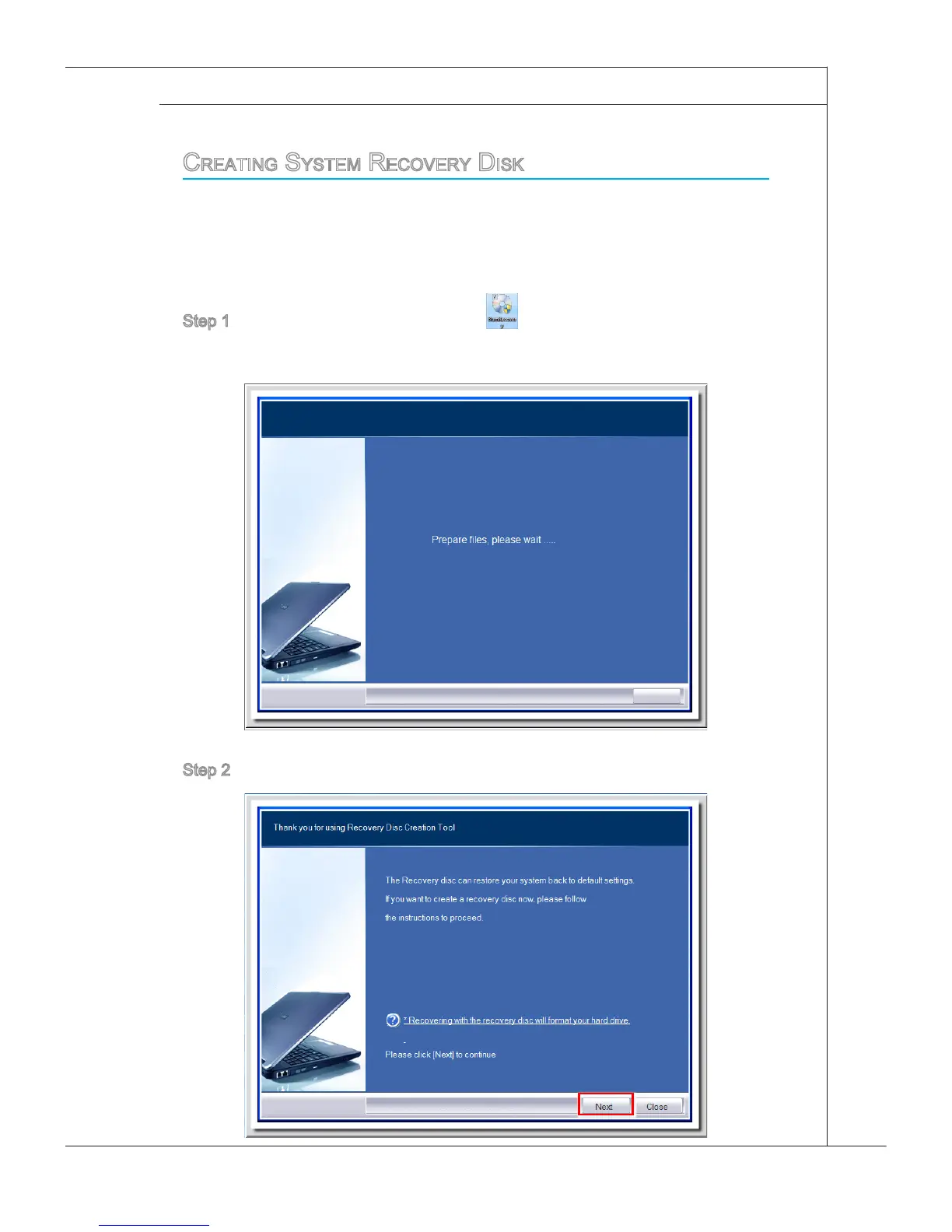 Creating SyStem reCovery DiSk