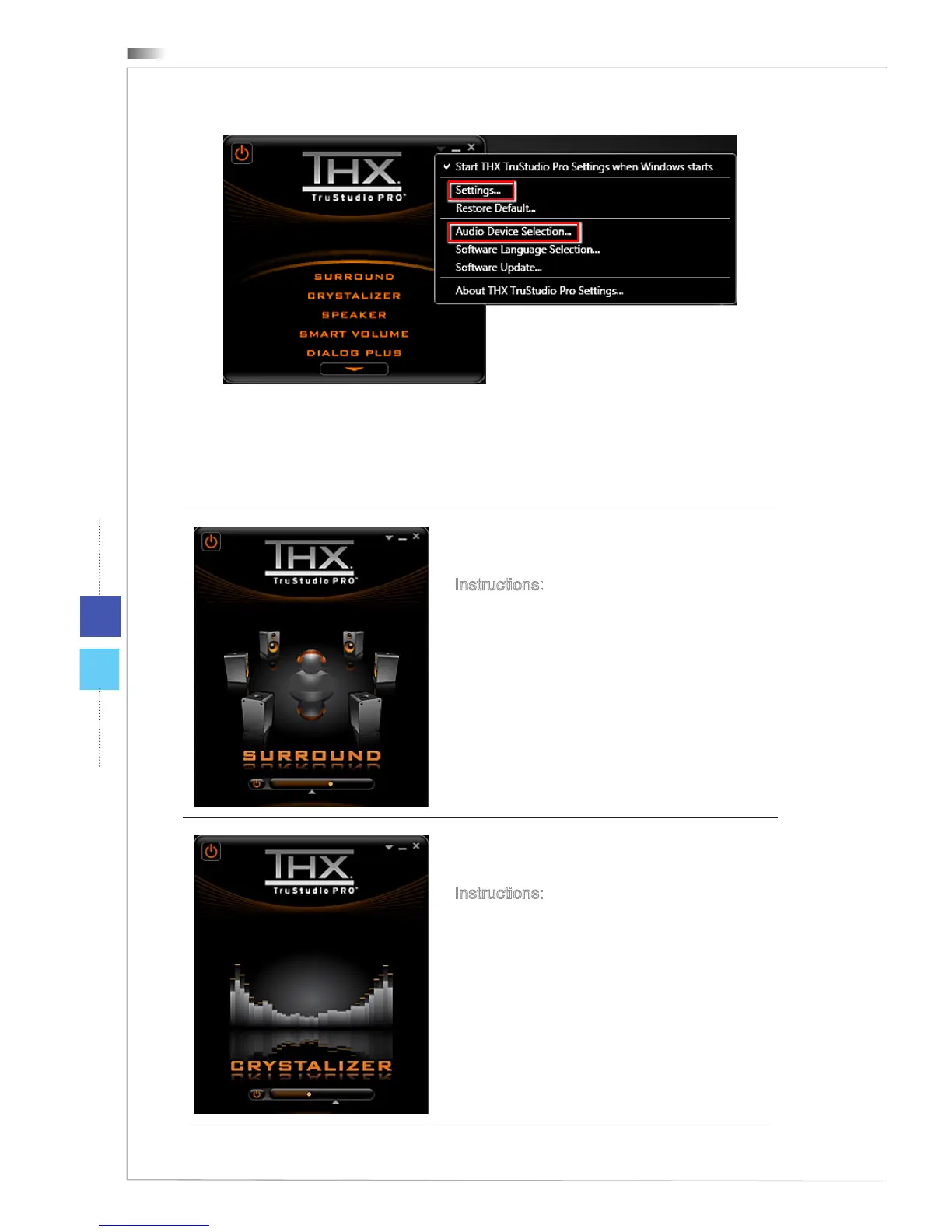 erences. The THX TruStudio PRO will process the specied audio signals to