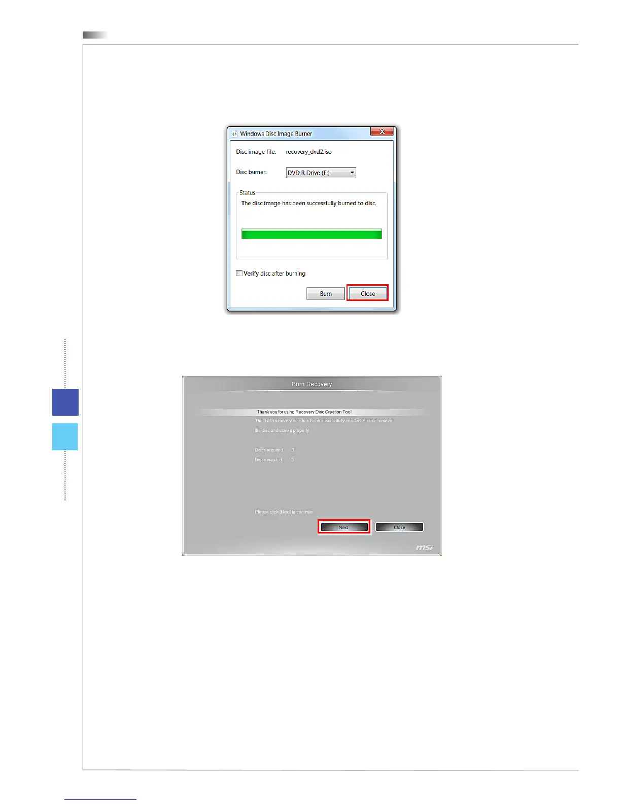 7. On completion of the disc creation, click [Close] to exit and take out the disc.