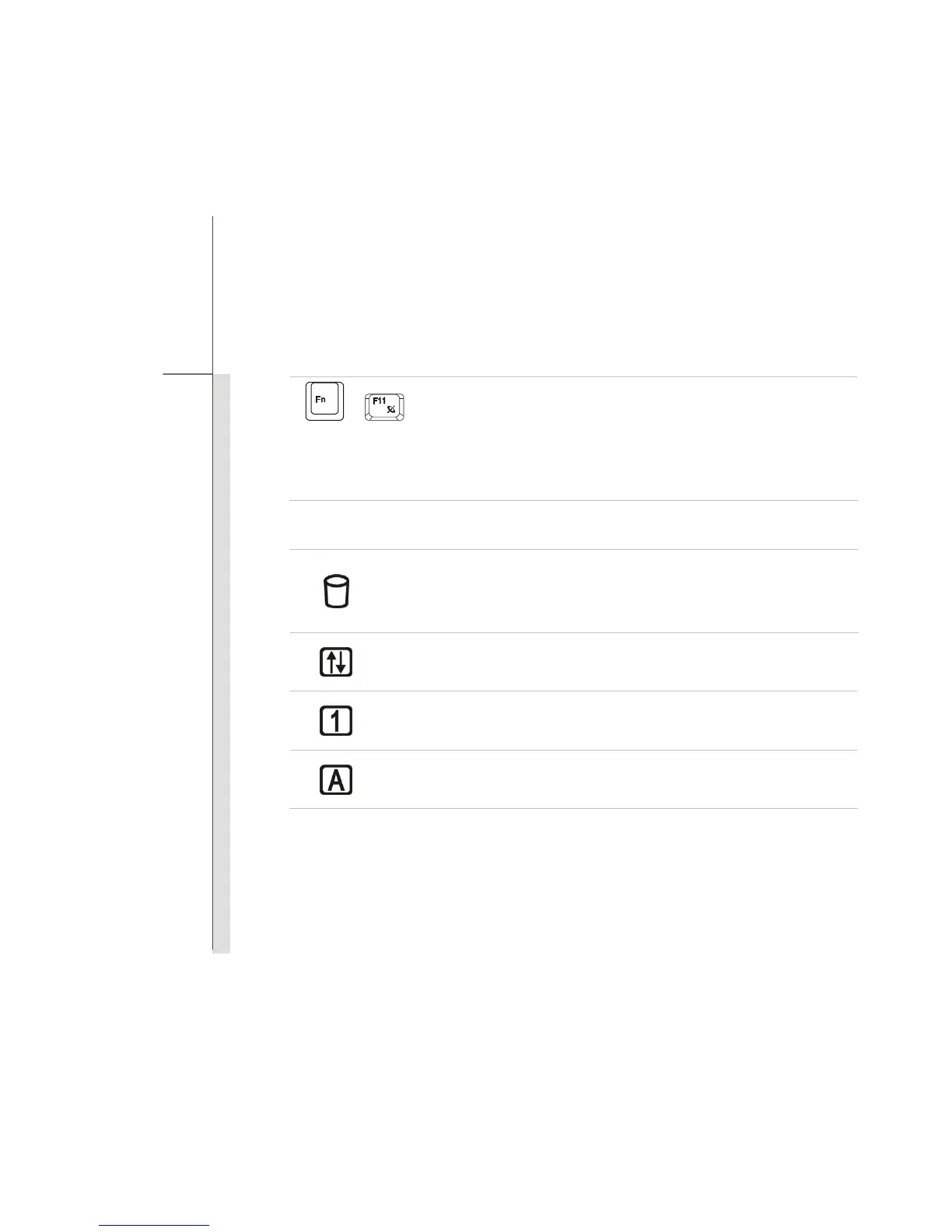 Scroll Lock: Glowing green when the Scroll Lock function is activated.
